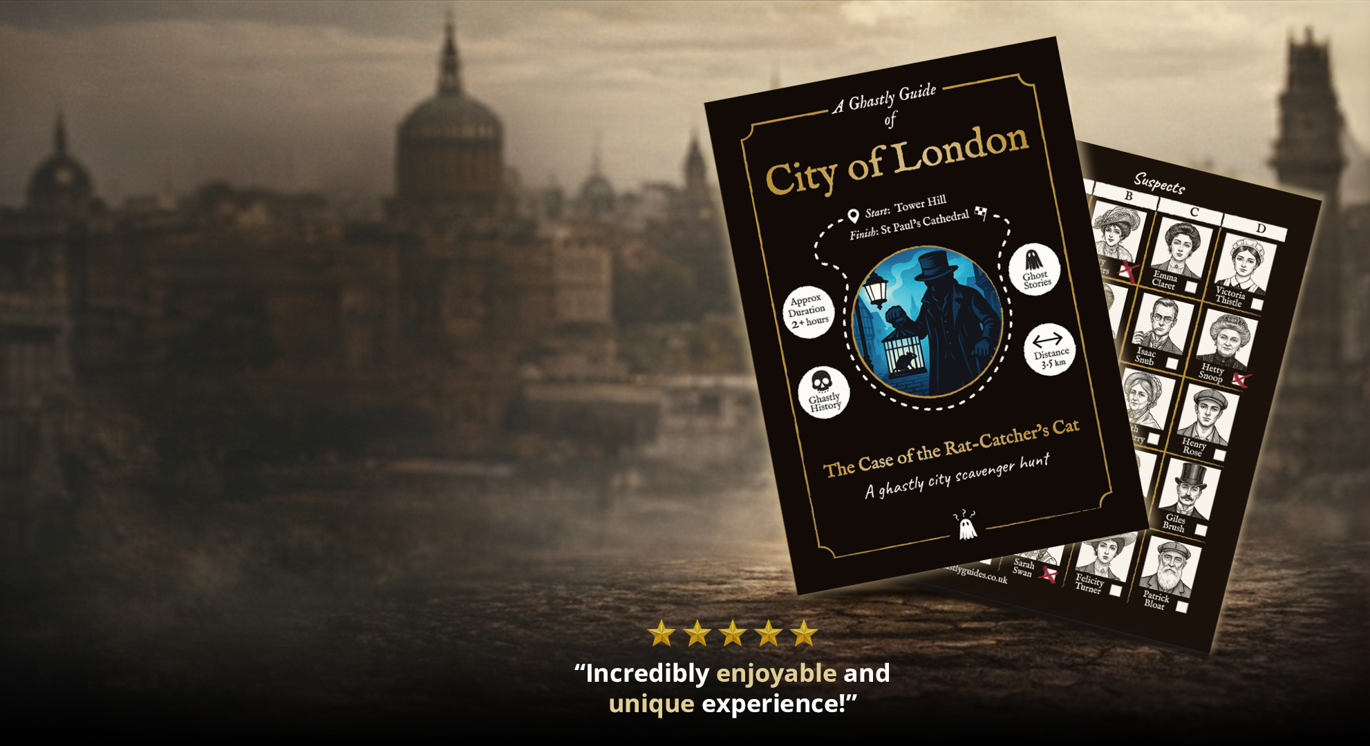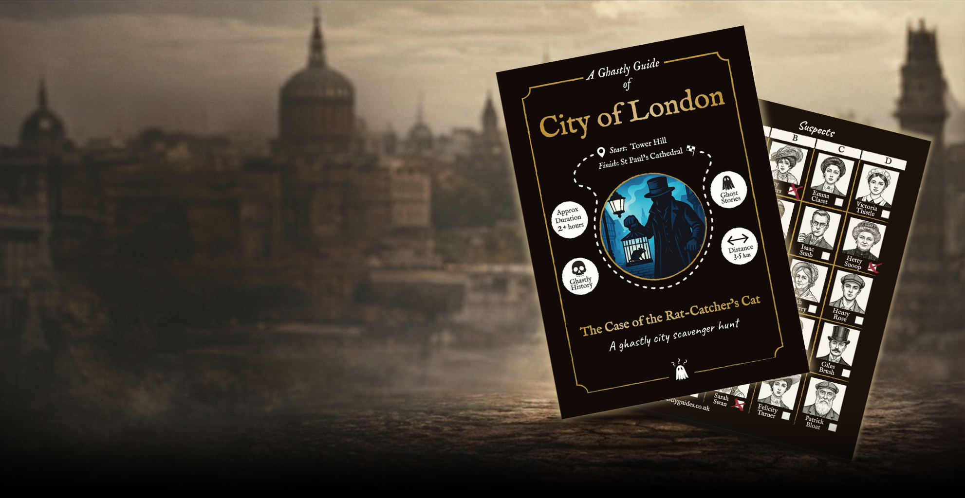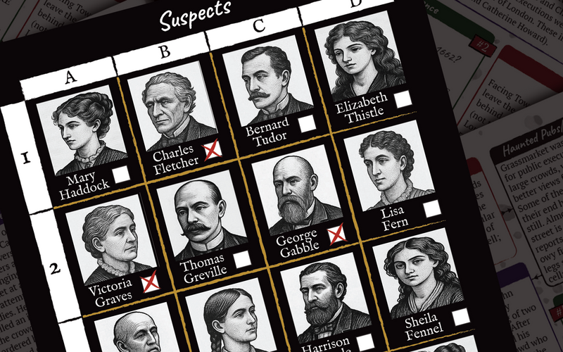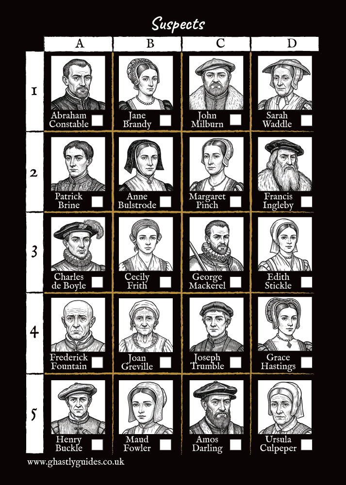 Choose your city and receive your Ghastly Guides booklet, packed with ghost stories, historic clues and a list of suspicious suspects. The mystery begins the moment you open the guide.